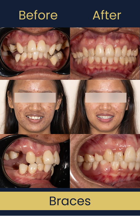 Below are some of the before after for dental treatments that include braces, crown, bridge and teeth whitening: